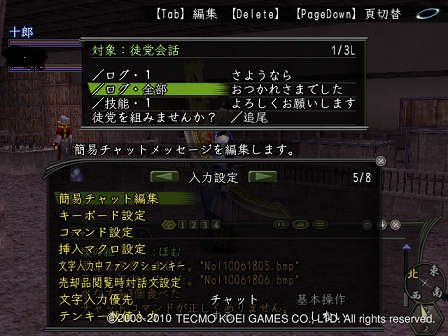 メニュー2【機能】>【設定】>【チャットログ切替設定】